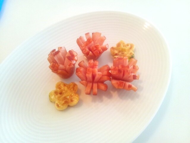 お弁当の飾りに おさかなソーセージで作るお花 レシピ 作り方 By Mywayuayu 楽天レシピ